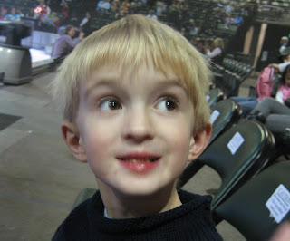 Watching the Zamboni at intermission. Lon loves the Zamboni. He is facsincated.