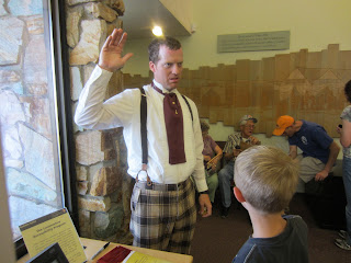 We watched the whole re-enactment. It was very cool. Lon was the first one to go up to have his picture taken with the cast. They let him hold the silver spike.